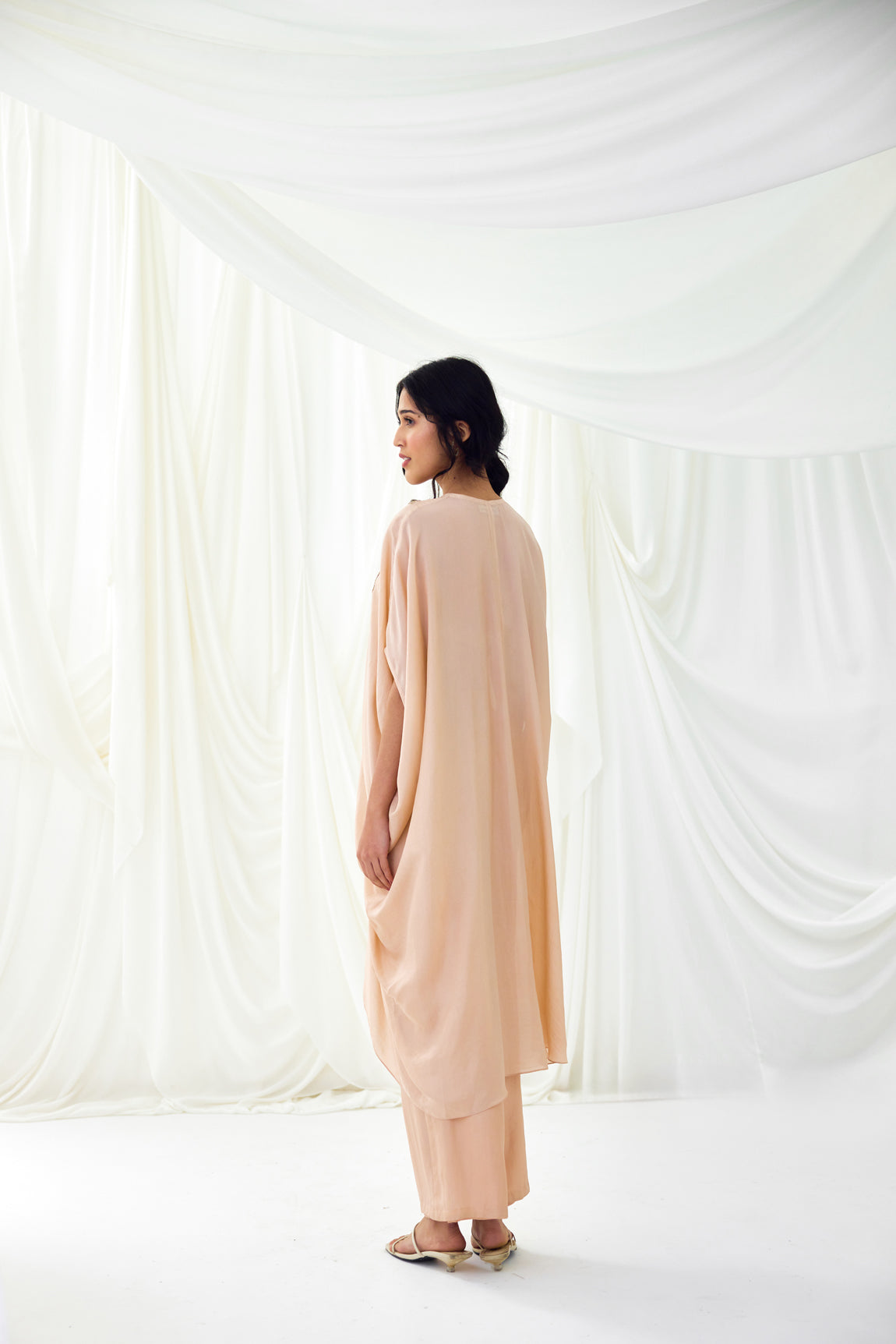 Gathered Kaftan Set in Pale Blush