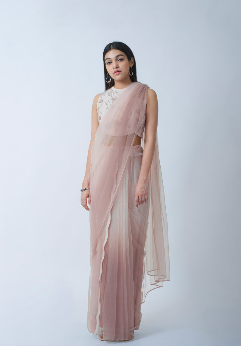 Blush And Rose Ombre Pre-Draped Saree