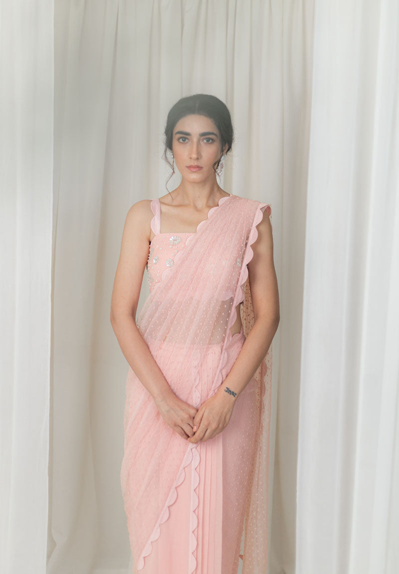 Blush Scallop Detail Pre-Stitched Saree