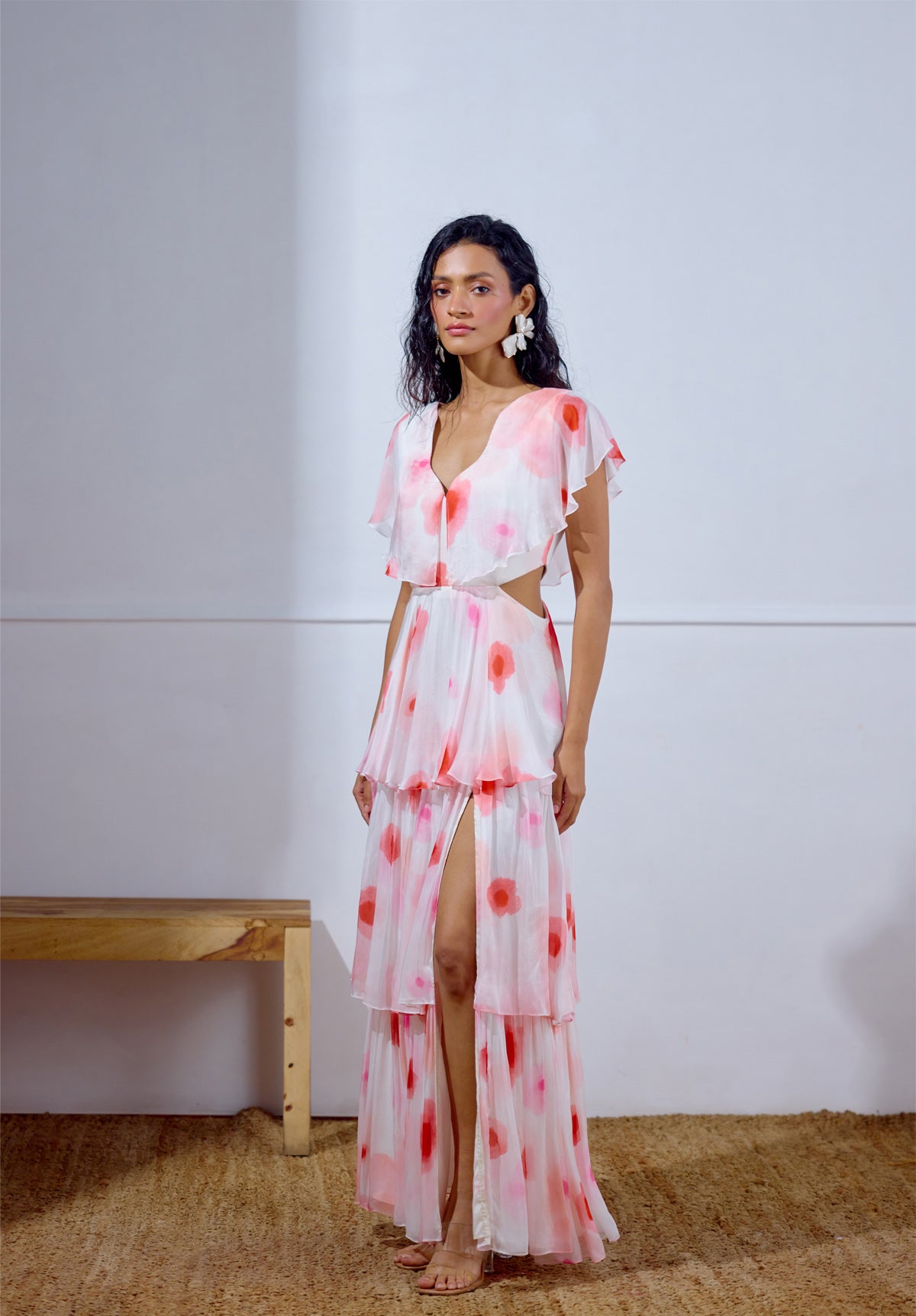 Tiered dress in our all new Ephemera print, featuring airy chiffon tiers, a wavy neckline and cutout detailing at the waist. A romantic silhouette that’s equal parts fun and flirty, it is perfect for breezy brunches and late summer soirees.
